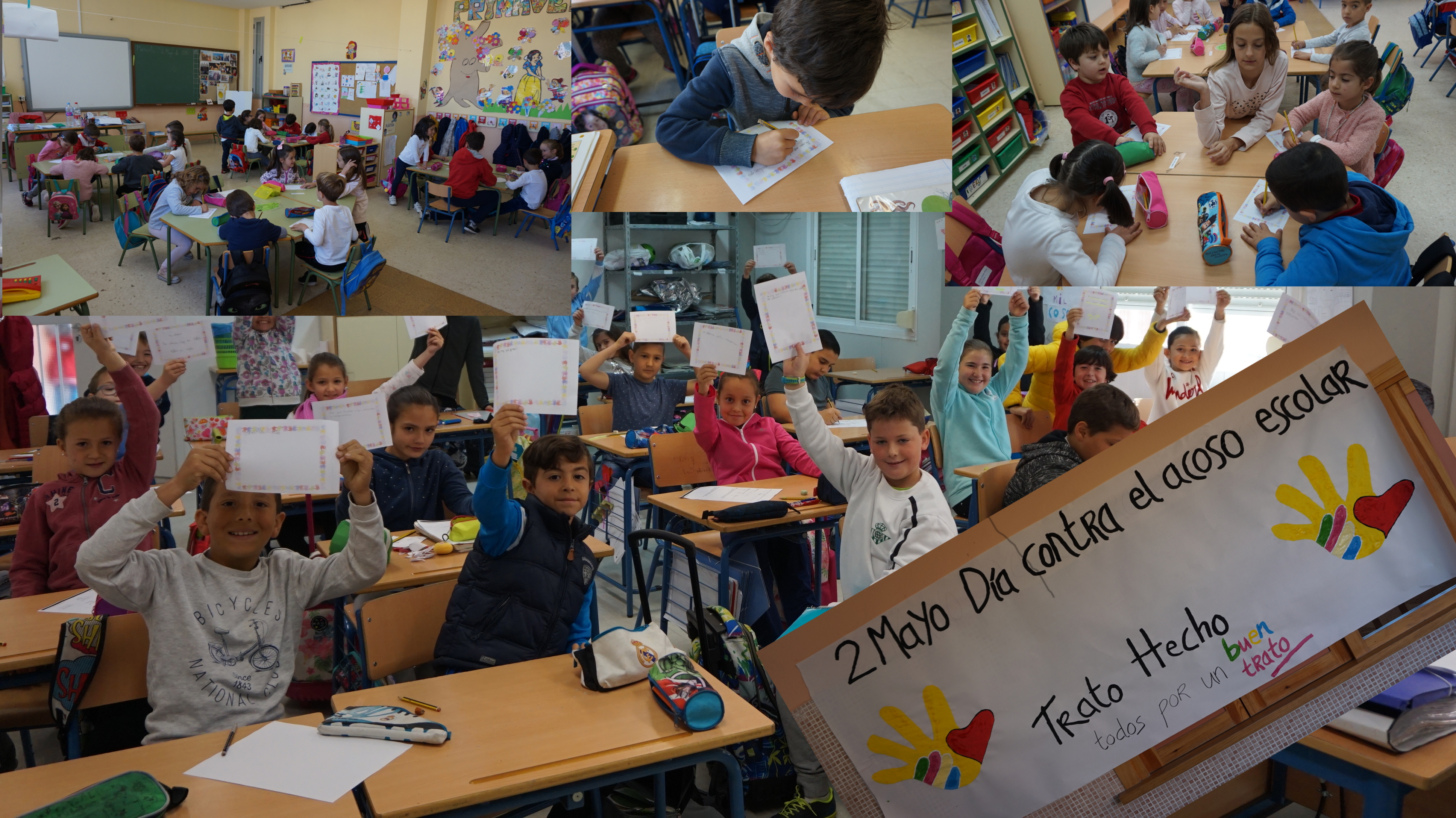 El pasado 2 de mayo se conmemoró el día contra el acoso escolar, para darle la importancia que tiene hemos realizado un gran mural donde los alumnos y alumnas han expresado mensajes en contra del acoso y en favor de la convivencia, respetando las diferencias entre cada uno.